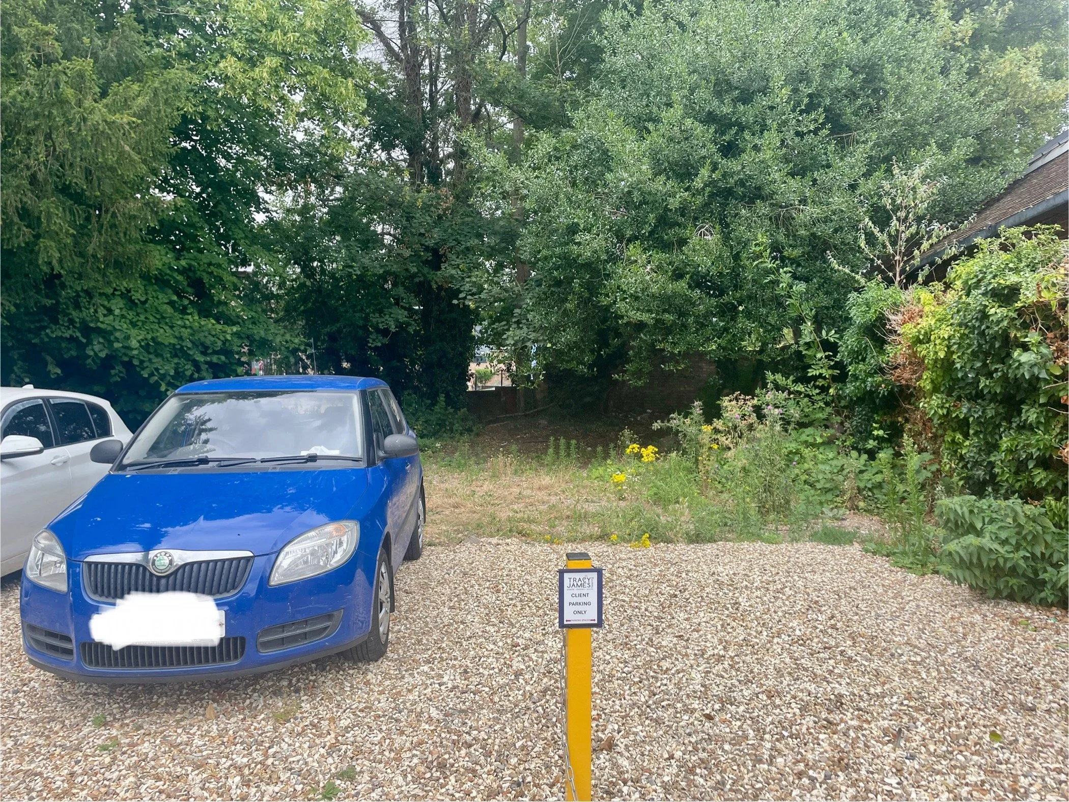 Parking to the left (where the blue car is) and right of the sign